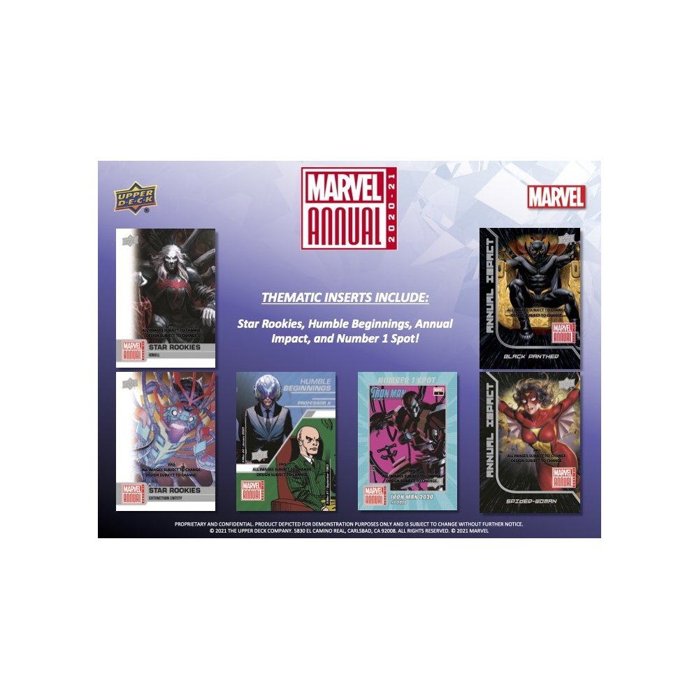 2020-2021 Marvel Annual serves as a time capsule for an unforgettable year in comics. Contents include tiered cover variants, holograms, sparkling foil parallels, lenticulars, autographs, and even booklet sketch cards! Marvel Annual is designed