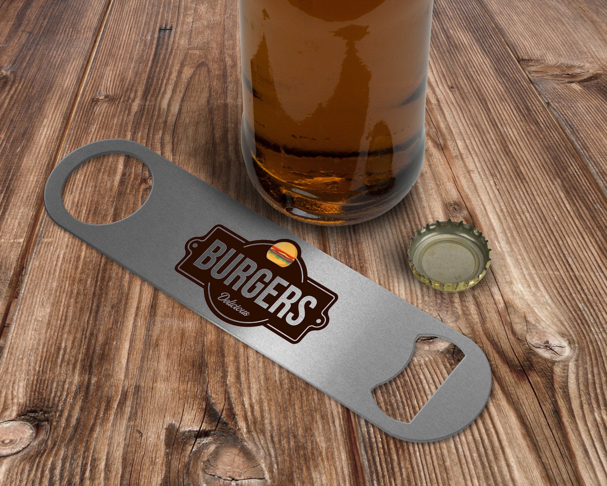 - Sturdy hand-held flat bottle opener