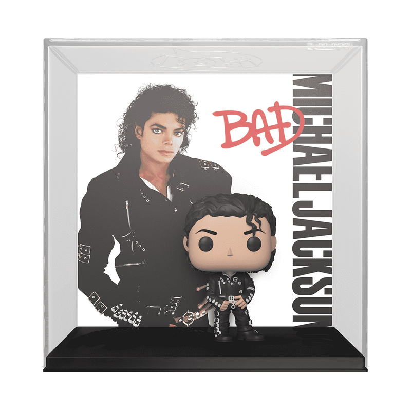 Elevate your Michael Jackson collection with the Pop! Albums Cover featuring his iconic "Bad" album, showcasing Pop! Michael Jackson in his legendary black leather ensemble.