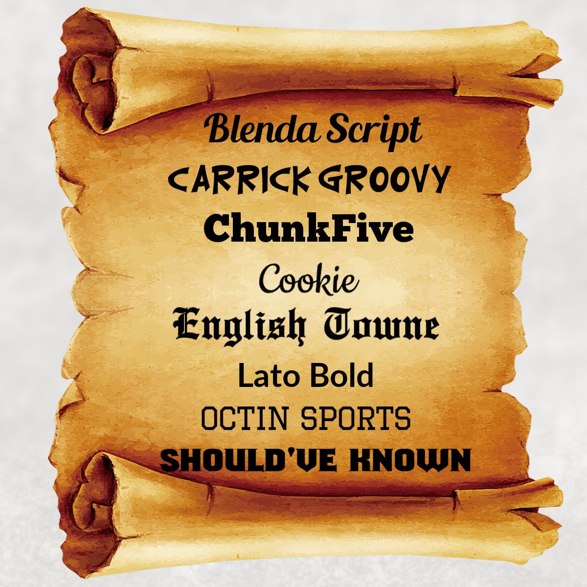 đ**Fonts are on the scroll in the listing photos.