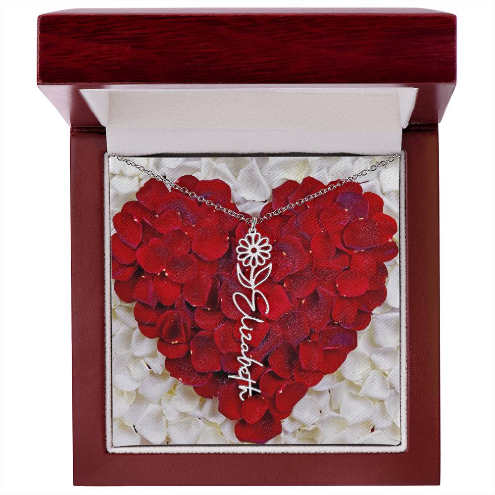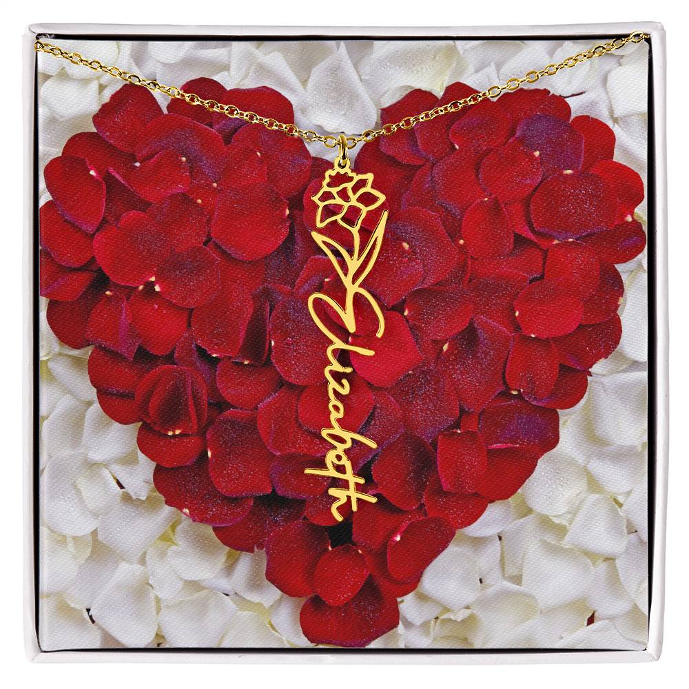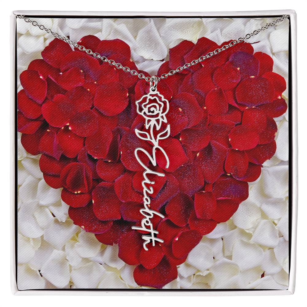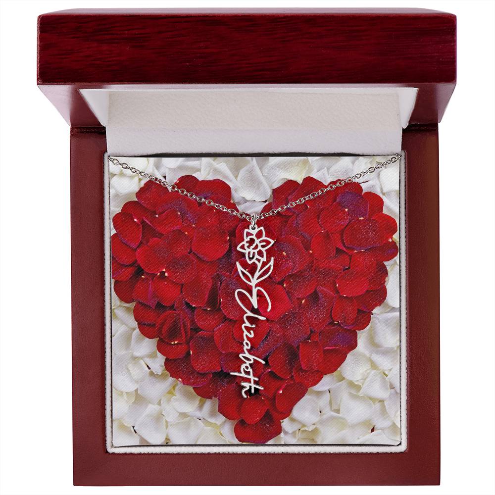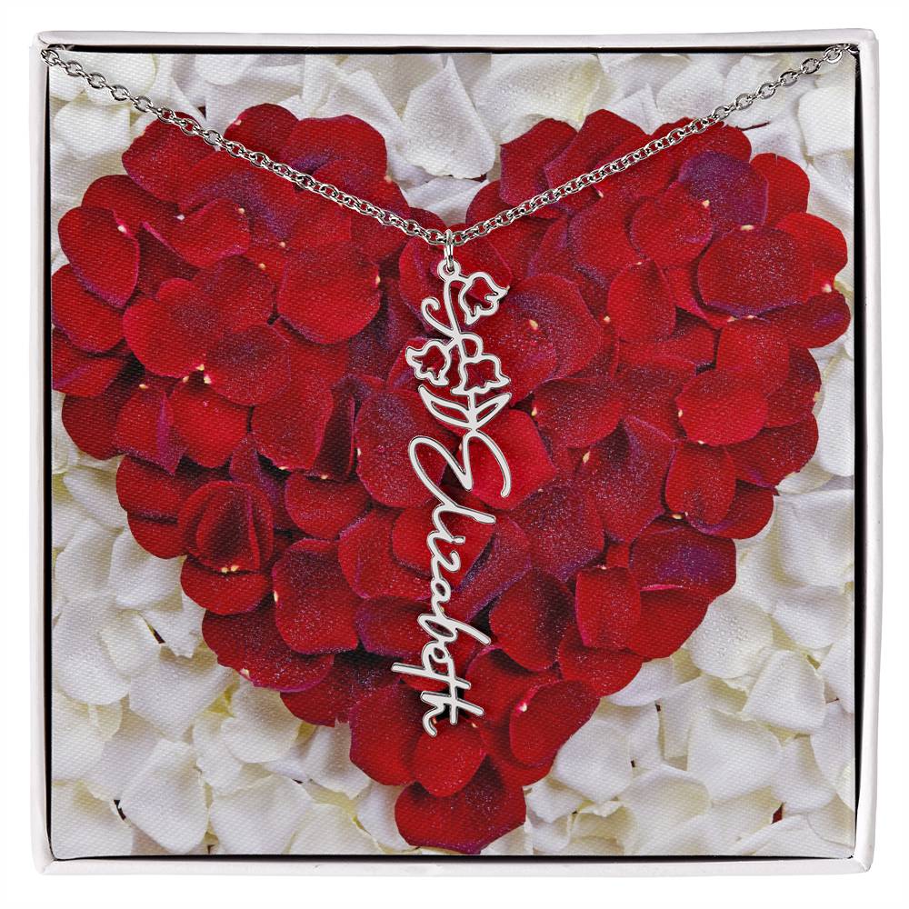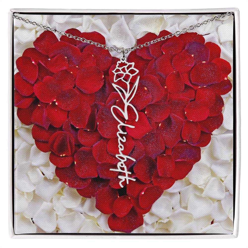 Featuring a delicate birth flower design seamlessly intertwined with a name of your choice, this piece radiates beauty, love, and individuality. Whether it's for a birthday, anniversary, or simply a "just because" moment, this necklace is the ultimate way to celebrate life’s special connections.