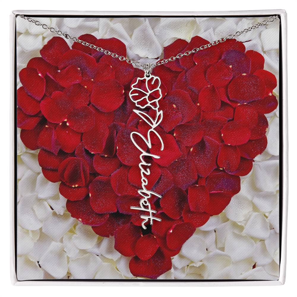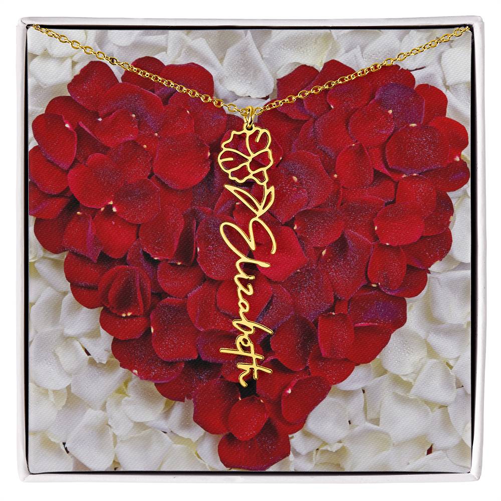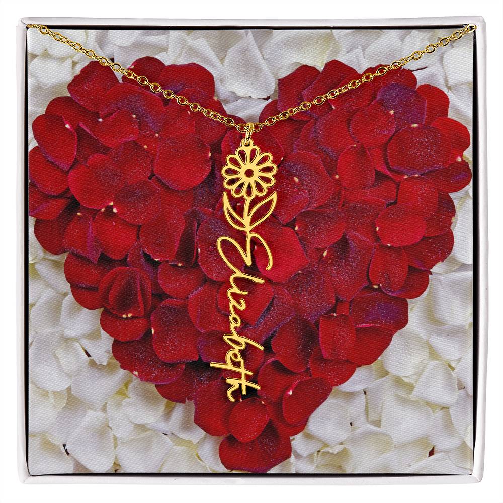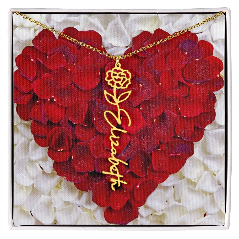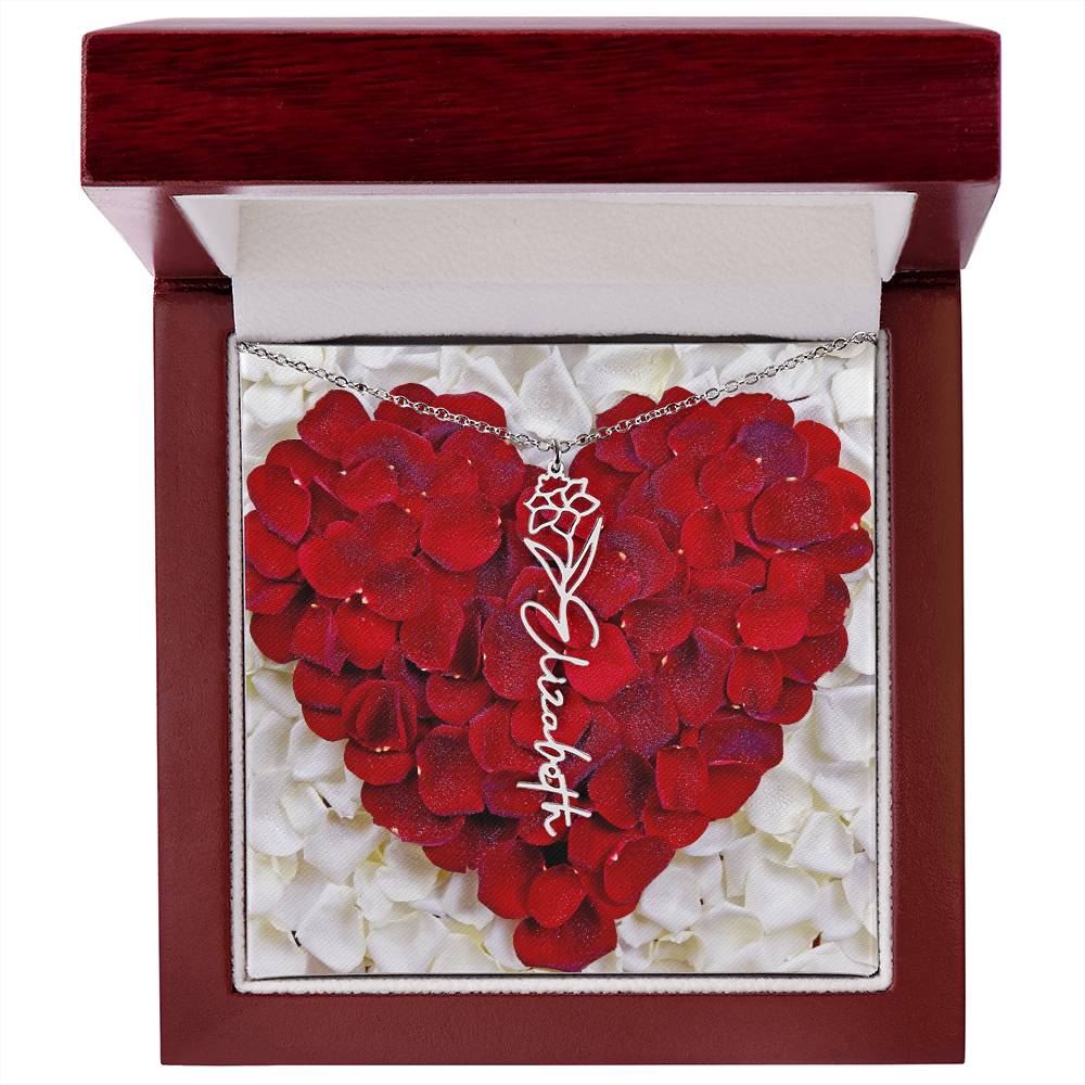 Featuring a delicate birth flower design seamlessly intertwined with a name of your choice, this piece radiates beauty, love, and individuality. Whether it's for a birthday, anniversary, or simply a "just because" moment, this necklace is the ultimate way to celebrate life’s special connections.