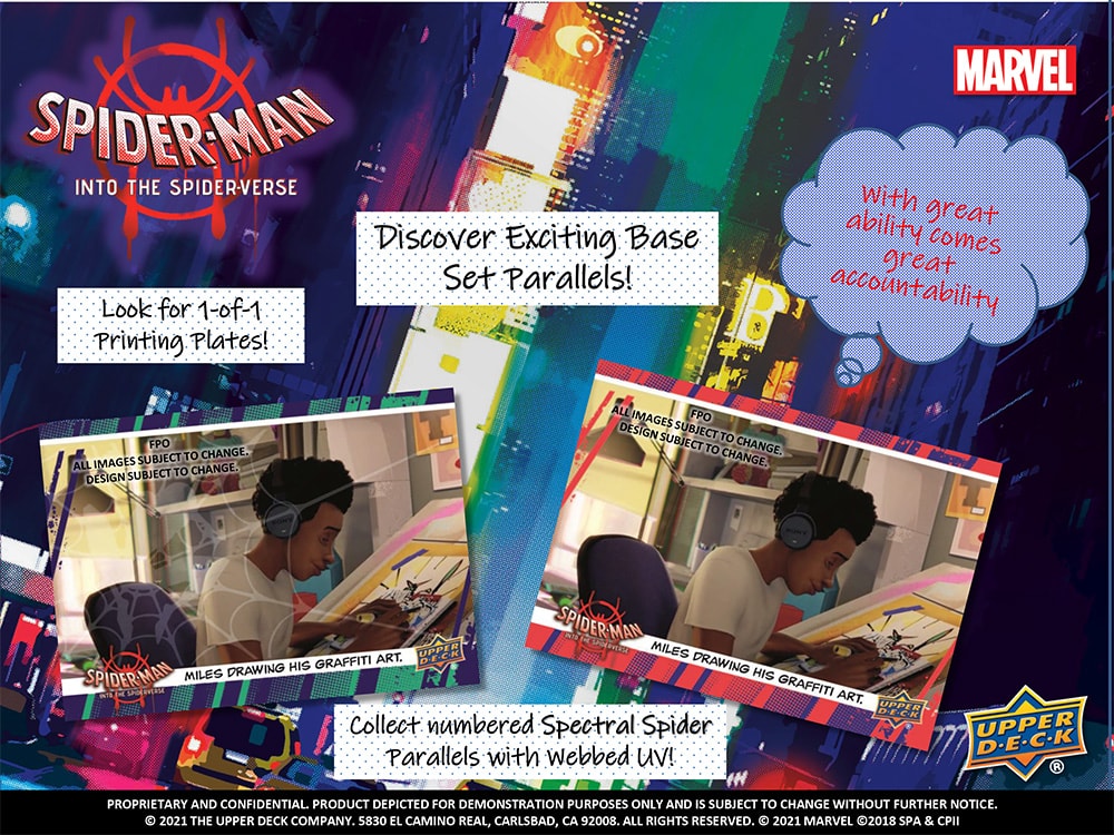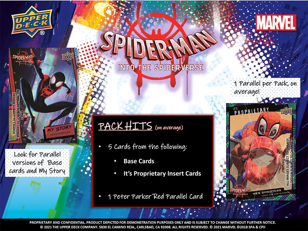 Each 2022 Upper Deck Marvel Spider-Man Into the Spiderverse Hobby Box contains 15 packs with 7 cards in every pack!